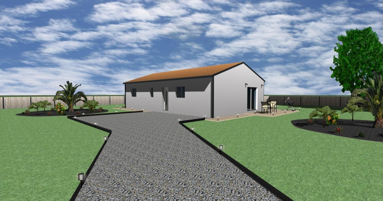 Composée d'une pièce de vie avec cuisine ouverte, d'un cellier, de 3 chambres dont une suite parentale, d'une salle de bain et d'un wc indépendant.