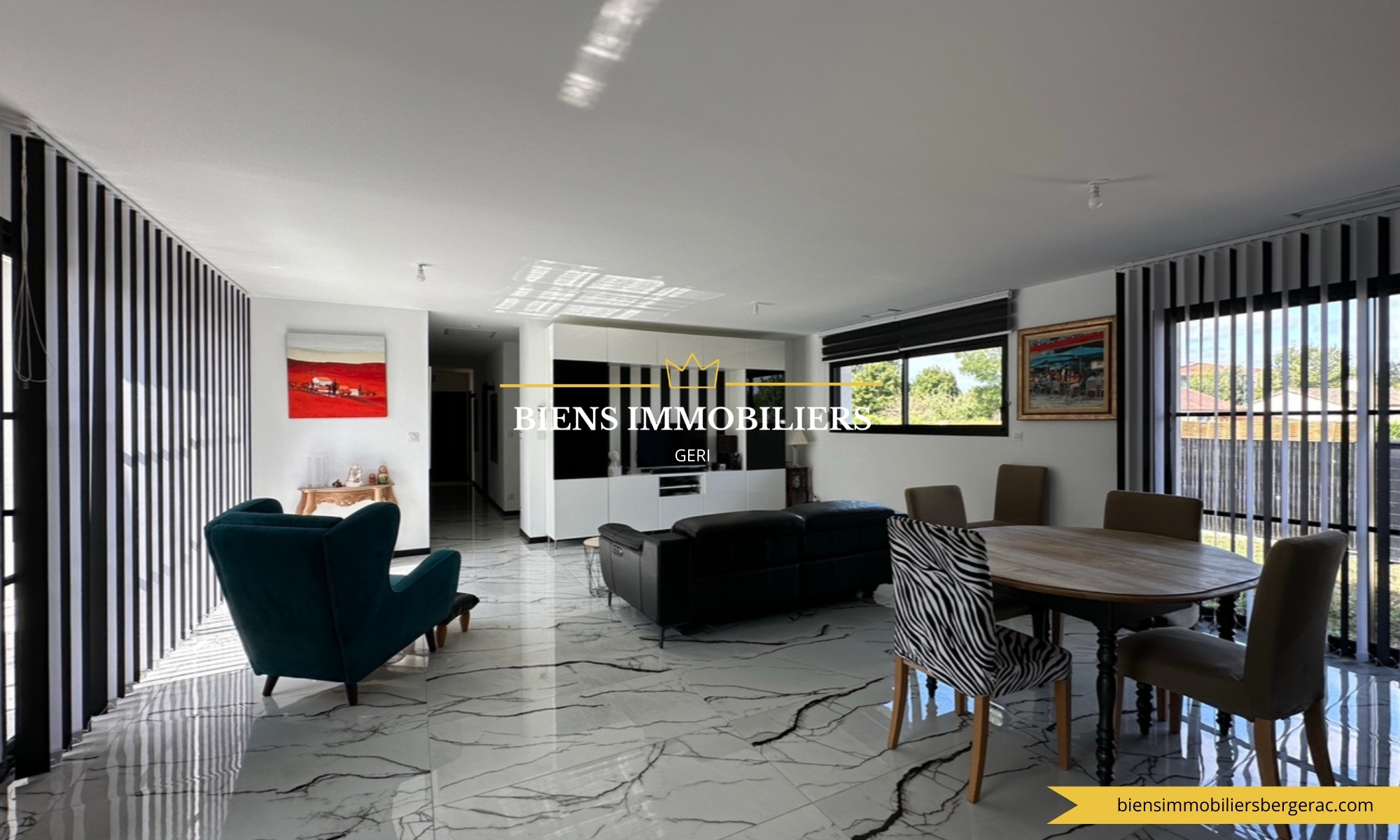 Votre agence BIENS IMMOBILIERS vous propose à la vente, cette magnifique maison de plain pied, contemporaine, située à Bergerac, à proximité des commerces et des écoles à pieds.