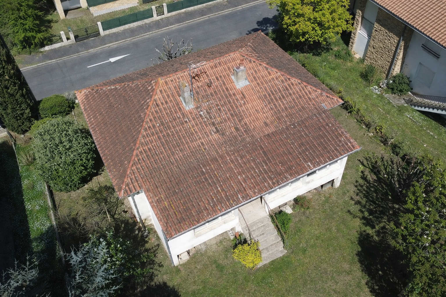 Maison individuelle à Bergerac sur sous-sol complet, située dans un environnement résidentiel calme, offrant un fort potentiel après rafraîchissement.
