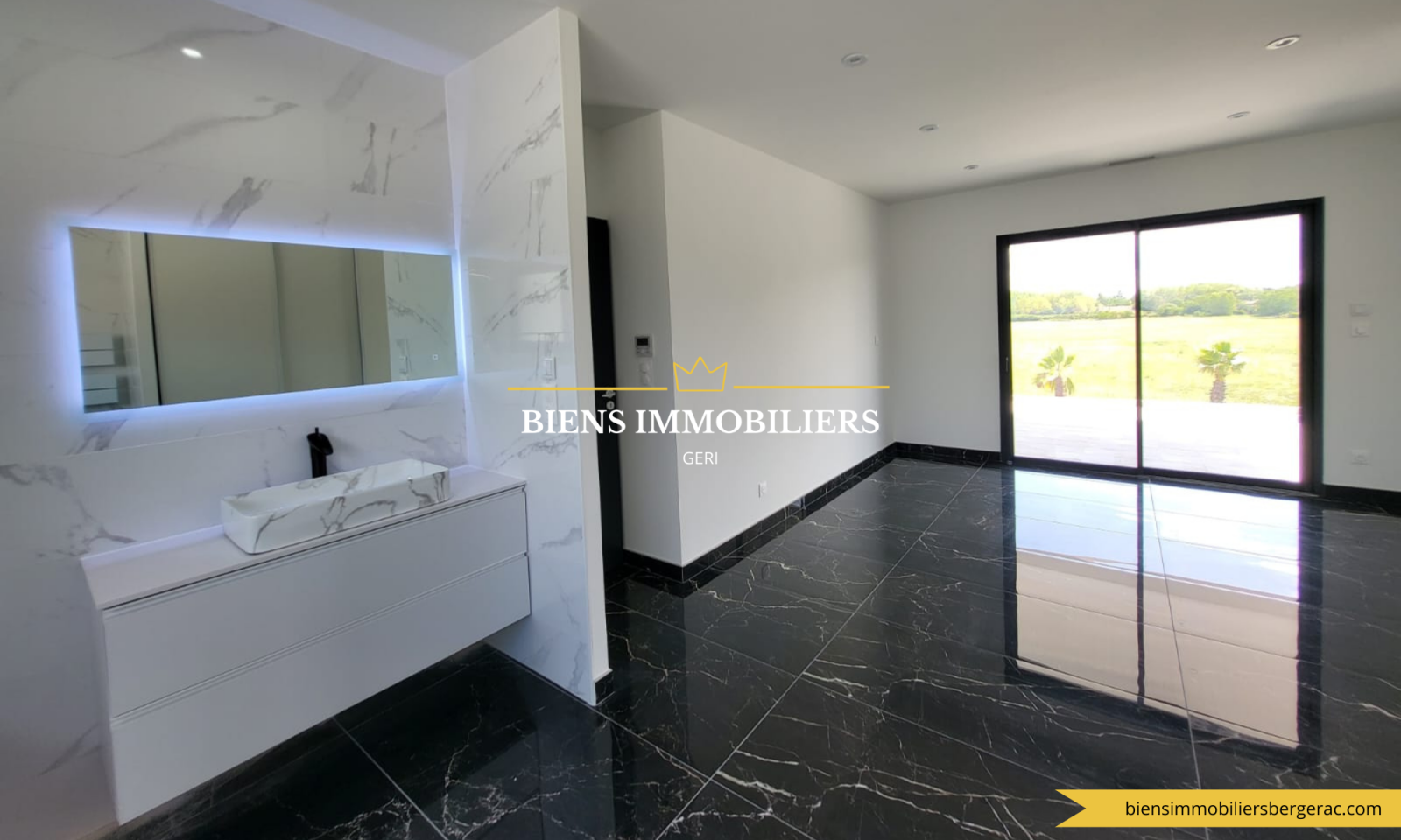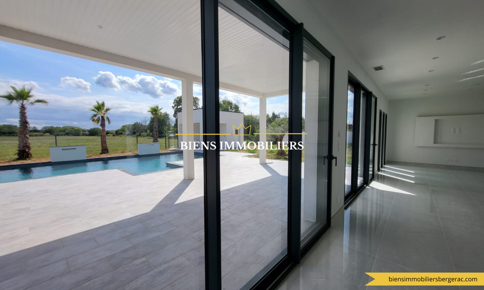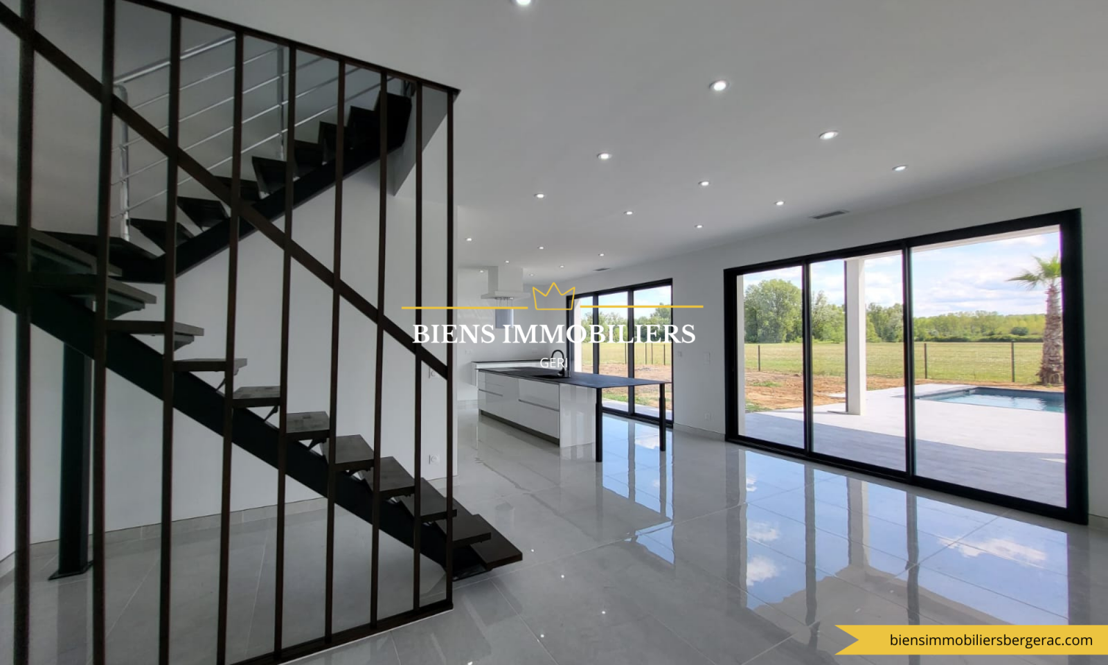 à propos de cebienVotre agence BIENS IMMOBILIERS vous propose à la vente, cette magnifique maison neuve de 2023 d'une superficie habitable de 220m² sur un terrain avec vue magnfique de 1800m². Maison composée d'une très belle pièce de vie, cuisine ouverte avec îlot central. 5 chambres, dont 2 suites parentales. Dressing, 3 salles de bains avec douche et baignoire. Cellier / buanderie. Double garage. Pool house avec salle d'eau, piscine avec cascades. TRES BELLE MAISON DE PRESTIGE. « Les informations sur les risques auxquels ce bien est exposé sont disponibles sur le site Géorisques : www.georisques.gouv.fr ». Contactez-nous au 05 53 23 46 62 ou venez nous retrouver au 68 bis rue clairat à Bergerac. Découvrez tous nos biens sur notre SITE INTERNET : http://biensimmobiliersbergerac.com ou suivez sur Facebook : https://www.facebook.com/BiensImmobiliersBergerac.fr/