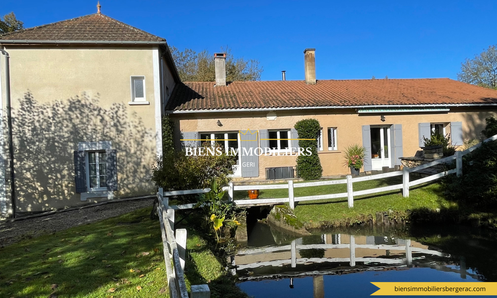 à propos de cebienVotre Agence Biens immobiliers vous propose cet ancien moulin avec son bief, de plus de 322m2 habitables proche de Bordeaux. Venez découvrir sa grande entrée, ses 7 chambres, deux salles de bains, trois WC, son grand salon/séjour lumineux ainsi que sa cuisine séparée. Le tout édifié sur une parcelle de plus de 29 000 m2 avec un lac présent au coeur de son parc. Vous serez séduits par son environnement, ses divers dependances, son architecture et son calme. Son architecture et sa configuration se prêtent aussi bien à une famille voulant de l'espace et de la tranquilité qu'à la réalisation d'une activitée professionnelle telle que des chambres d'hotes par exemple. Située à moins d'une heure de Bordeaux, elle n'attend plus que vous. « Les informations sur les risques auxquels ce bien est exposé sont disponibles sur le site Géorisques : www.georisques.gouv.fr ». Contactez-nous au 05 53 23 46 62 ou venez nous retrouver au 68 bis rue clairat à Bergerac. Découvrez tous nos biens sur notre SITE INTERNET : http://biensimmobiliersbergerac.com